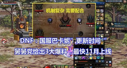最近在游戏圈里可是炸开了锅,大家都在热议一个超级大爆料——那就是《地下城与勇士》(简称DNF)中的神秘角色巴卡妮的最新消息!你是不是也迫不及待想要一探究竟呢?那就跟着我一起,从多个角度来揭开这个神秘角色的神秘面纱吧!